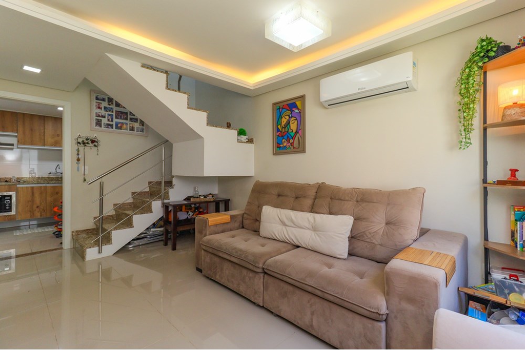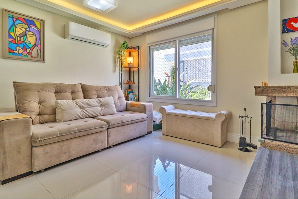 Conforto e praticidade em um só lugar. Casa em condomínio fechado no bairro Nonoai, com duas suítes, 106m², lareira convencional, churrasqueira e vaga de garagem coberta. Um lar acolhedor em um bairro tradicional da Zona Sul! Sala ampla com lareira, painel de televisão sob medida, lavabo e ar condicionado. Cozinha com armários sob medida de ótimo padrão e aproveitamento dos espaços, fogão cooktop e forno. Espaço gourmet integrado com a cozinha, churrasqueira tradicional. Cobertura em vidro com acionamento automatizado. Escada em mármore e corrimão em alumínio. No andar superior você encontrará duas amplas suítes. Suíte 1, closet, aparelho de ar condicionado, banheiro com ventilação natural, aparelho de ar condicionado instalado. Suíte 2, closet, aparelho de ar condicionado, banheiro com ventilação natural, aparelho de ar condicionado instalado. Ambientes iluminados, acabamentos de qualidade e um projeto que valoriza o conforto e a qualidade de vida. Possui depósito no sótão e caixa dágua. Condomínio com 6 casas, tranquilo e organizado, pintura nova. Localização tranquila, com fácil acesso Avenida Nonoai, próximo a SPAM e alguns minutos do Barra Shopping e Bourbon Teresópolis. Agende já a sua visita. Preço e disponibilidade do imóvel sujeitos a alteração sem aviso prévio.