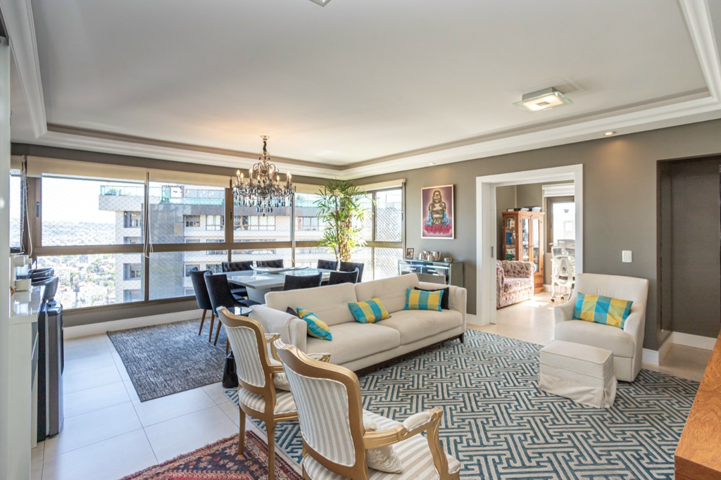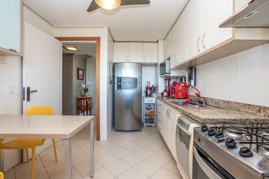 Apartamento semimobiliado com 132,8 m2 em andar alto, privilegiado por luz natural abundante. A área íntima conta com três dormitórios, incluindo uma suíte. O living amplo para três ambientes integra lareira e espaço gourmet com churrasqueira. A planta inclui lavabo, rouparia, cozinha, área de serviço e dependência de serviço completa. Dispõe de três vagas de garagem. Situado na parte alta do Bela Vista, o condomínio oferece infraestrutura de lazer com piscina aquecida, fitness, playground, salão de festas e churrasqueira, além de portaria 24 horas, elevador, gás central, interfone e medições individuais de água e gás. Uma oportunidade de viver com conforto, praticidade e excelente qualidade de vida. Preço e disponibilidade do imóvel sujeitos a alteração sem aviso prévio.