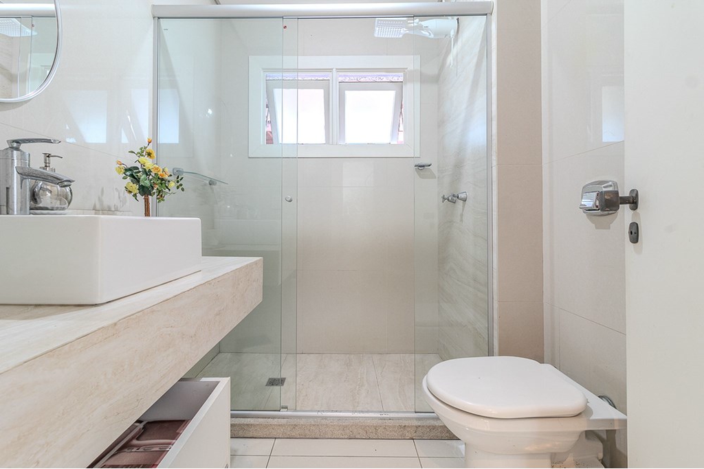No pavimento inferior, living amplo para três ambientes integra-se à cozinha americana planejada em conceito aberto, contando ainda com lavabo e sistema de gás central. A área íntima dispõe de dois dormitórios bem iluminados e ventilados, atendidos por banheiro social, garantindo funcionalidade e conforto no dia a dia.