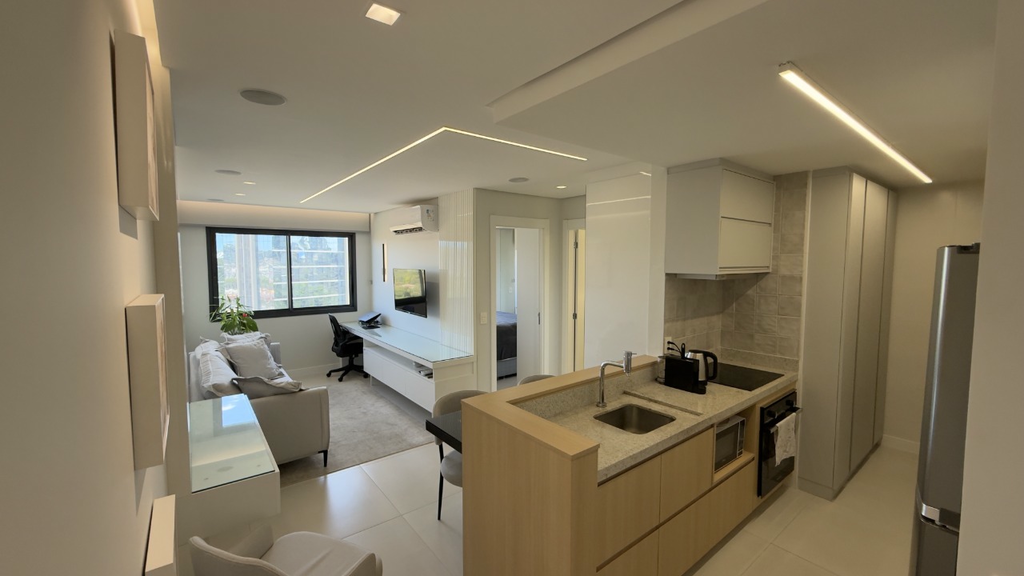 Apartamento com 43 m2 privativos projetado e decorado com layout integrado som embutido iluminação cênica e obras originais da Urban Arts, teto com isolamento em lã de rocha garantindo conforto acústico e térmico, mobiliário selecionado com peças da Império Persa como cadeiras sofá e tapete com tampos em vidro temperado, dormitório com cama baú da Vivar, cozinha equipada com eletrodomésticos Brastemp e climatização garantida por dois aparelhos de ar condicionado Springer, conta com 1 vaga de garagem coberta e escriturada, condomínio com infraestrutura completa incluindo rooftop e sky lounge com vista panorâmica piscinas externa e interna salão de festas espaço gourmet fitness sauna espaço kids coworking portaria 24 horas gerador e port cochère. Preço e disponibilidade do imóvel sujeitos a alteração sem aviso prévio.