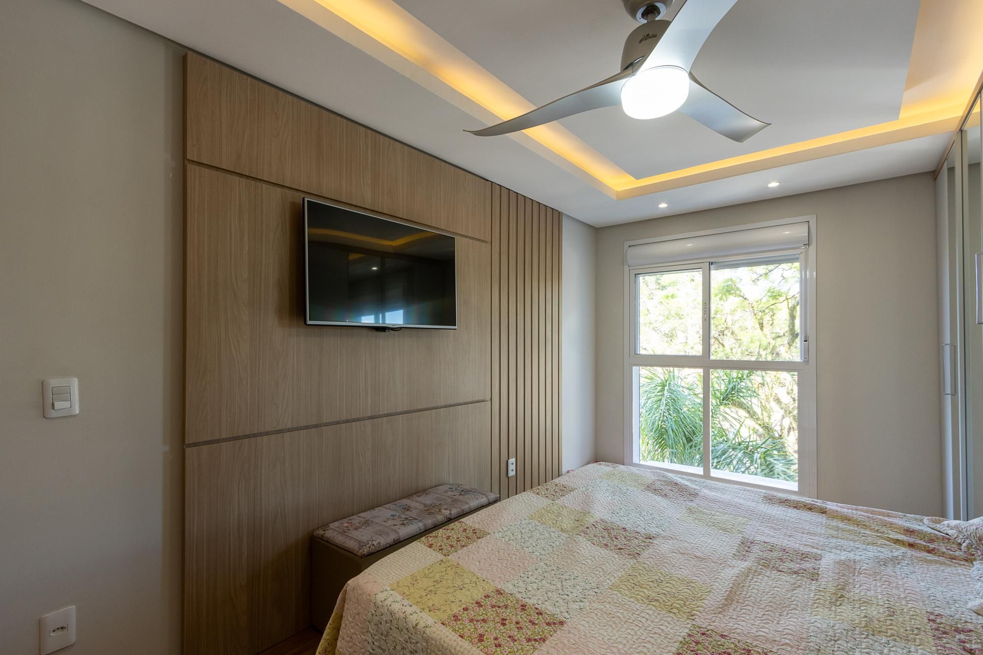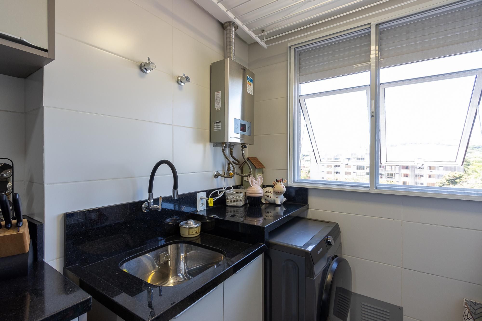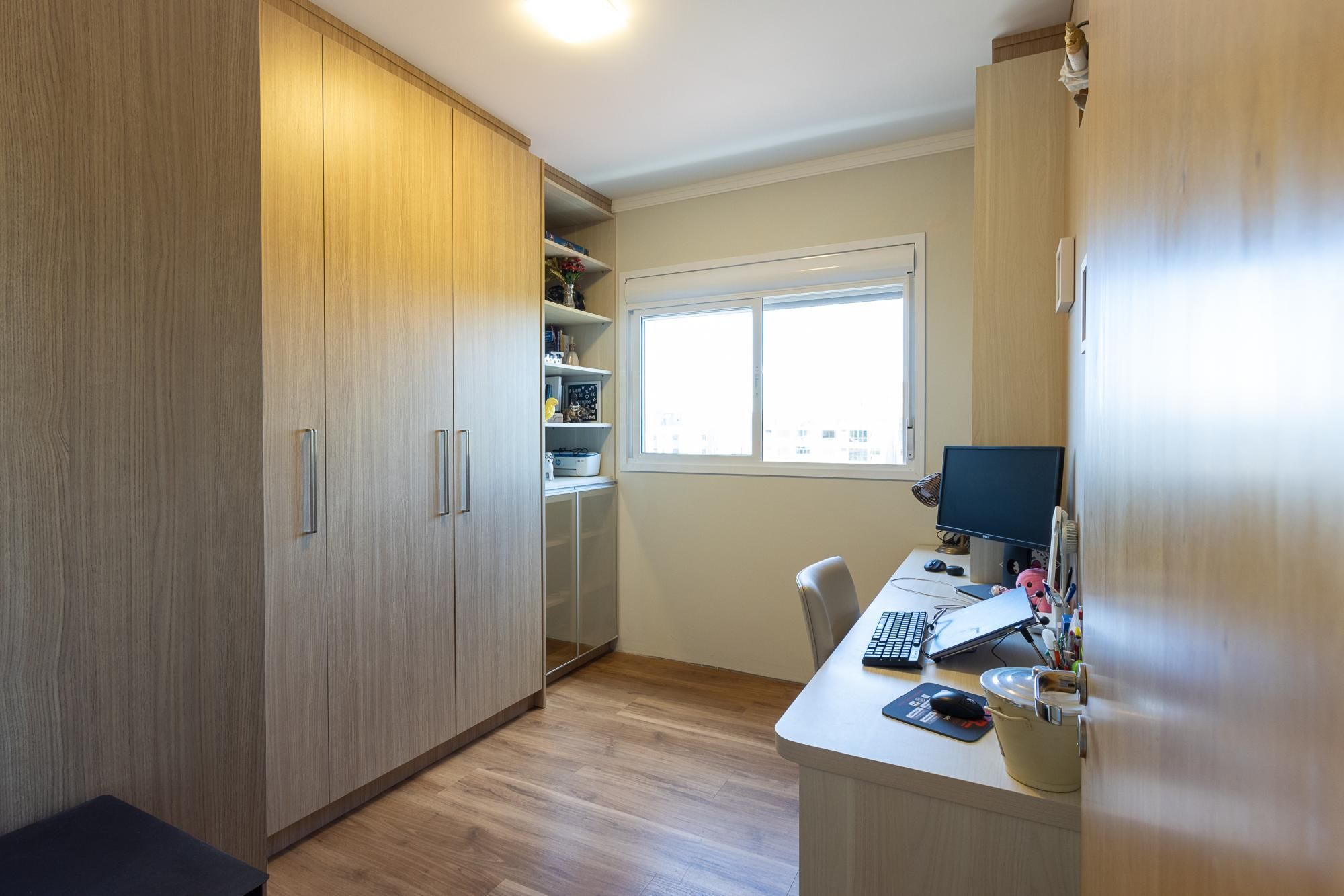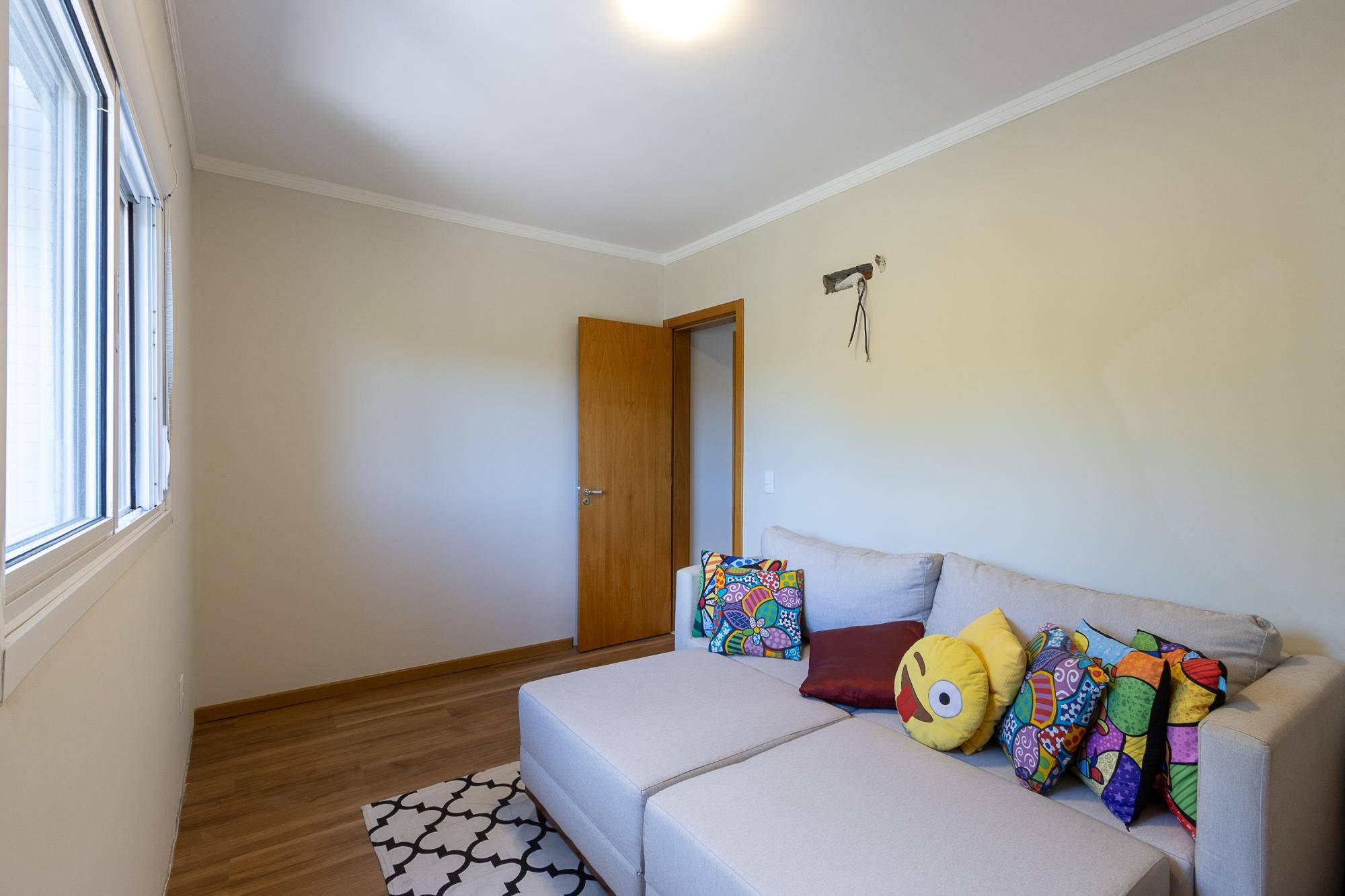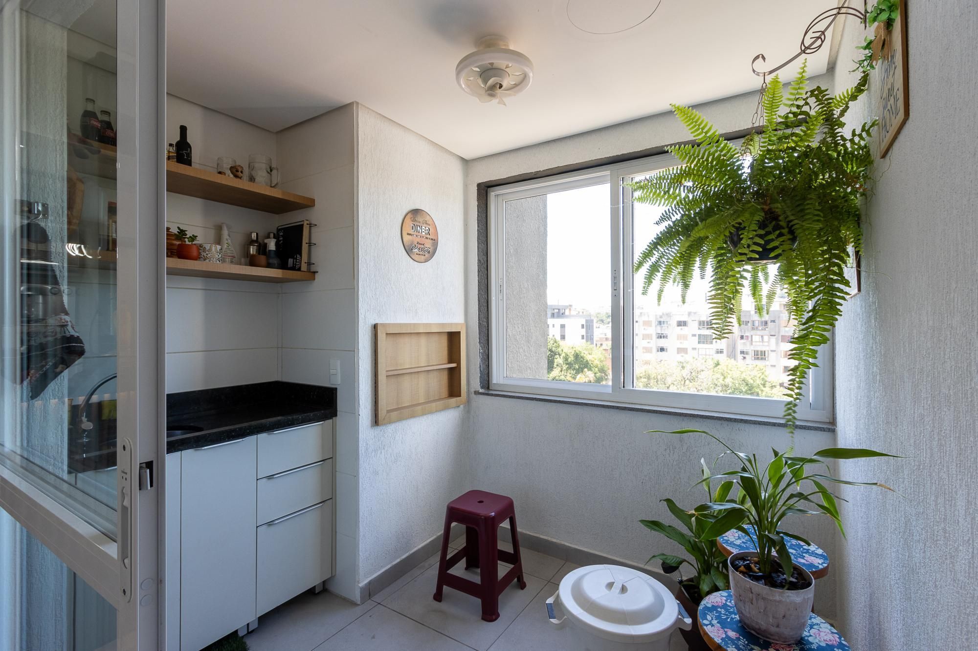 Apartamento praticamente novo, apenas 3 anos de uso, semi mobiliado, piso porcelanato nas áreas úmidas e sociais e piso laminado nos dormitórios. Possui cozinha, serviços, living amplo e varanda fechada com espaço para churrasco, circulação, banheiro social, dois dormitórios e uma suíte.