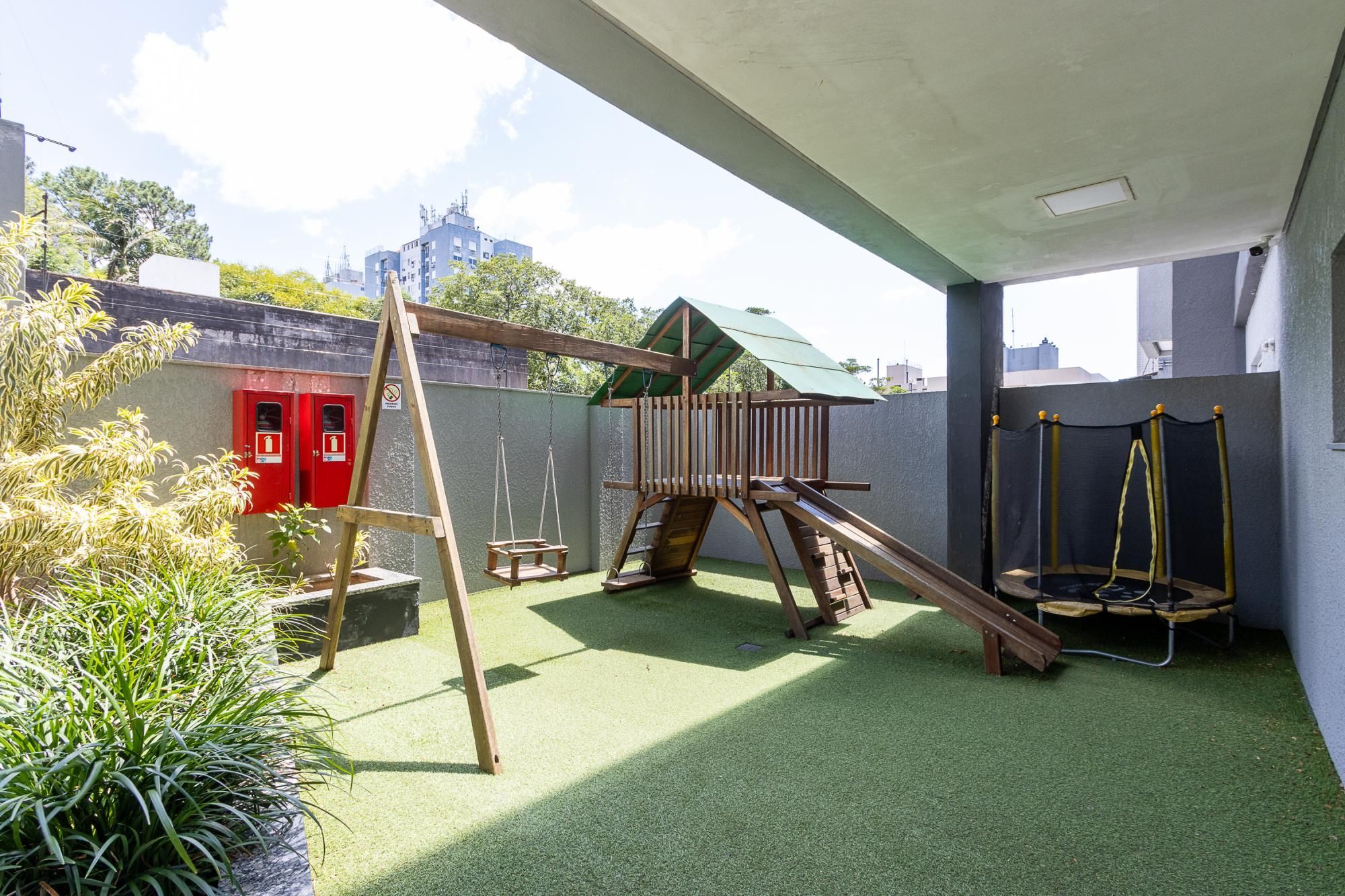 A vaga de estacionamento é dupla e coberta.