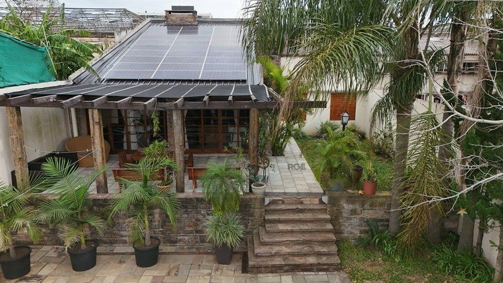 Anexo a casa tem uma área com churrasqueira, jardim de Inverno toda envidraçada, garagem para 3 carros.