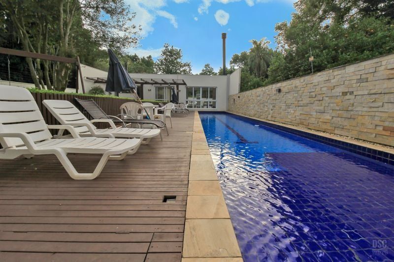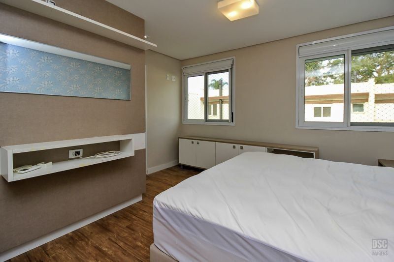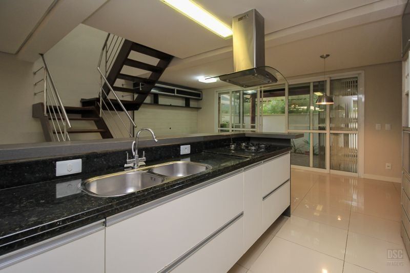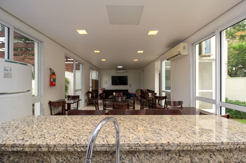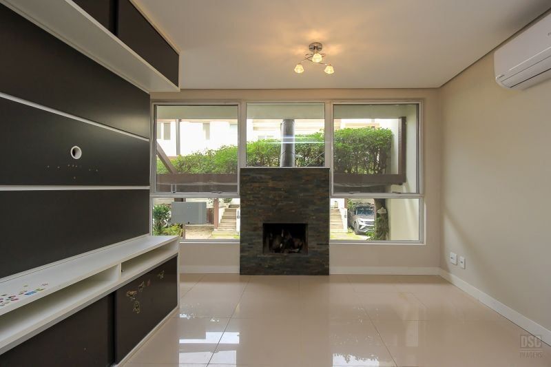 Casa em condomínio fechado, 3 dormitórios sendo 1 suite, social integrado: Jantar, estar c/ lareira e lavabo. Cozinha com bancada e armários, churrasqueira no pergolado, pátio, clarabóia p/ dar maior luminosidade e gabinete. Todas as peças c/ armários, sistema de ar condicionado split. Condominio organizado, enxuto, apenas 24 casas, c/ sistema de segurança virtual, salão de festas, piscina c/ raia e playground. Esta casa é a que tem maior pátio das demais e por ser a últlima, fica sendo a extensão ao lado da área de lazer. Localizado próximo a todos recursos. Serviço e comércio fácil acesso a transporte e mobilidade. Preço e disponibilidade do imóvel sujeitos a alteração sem aviso prévio.