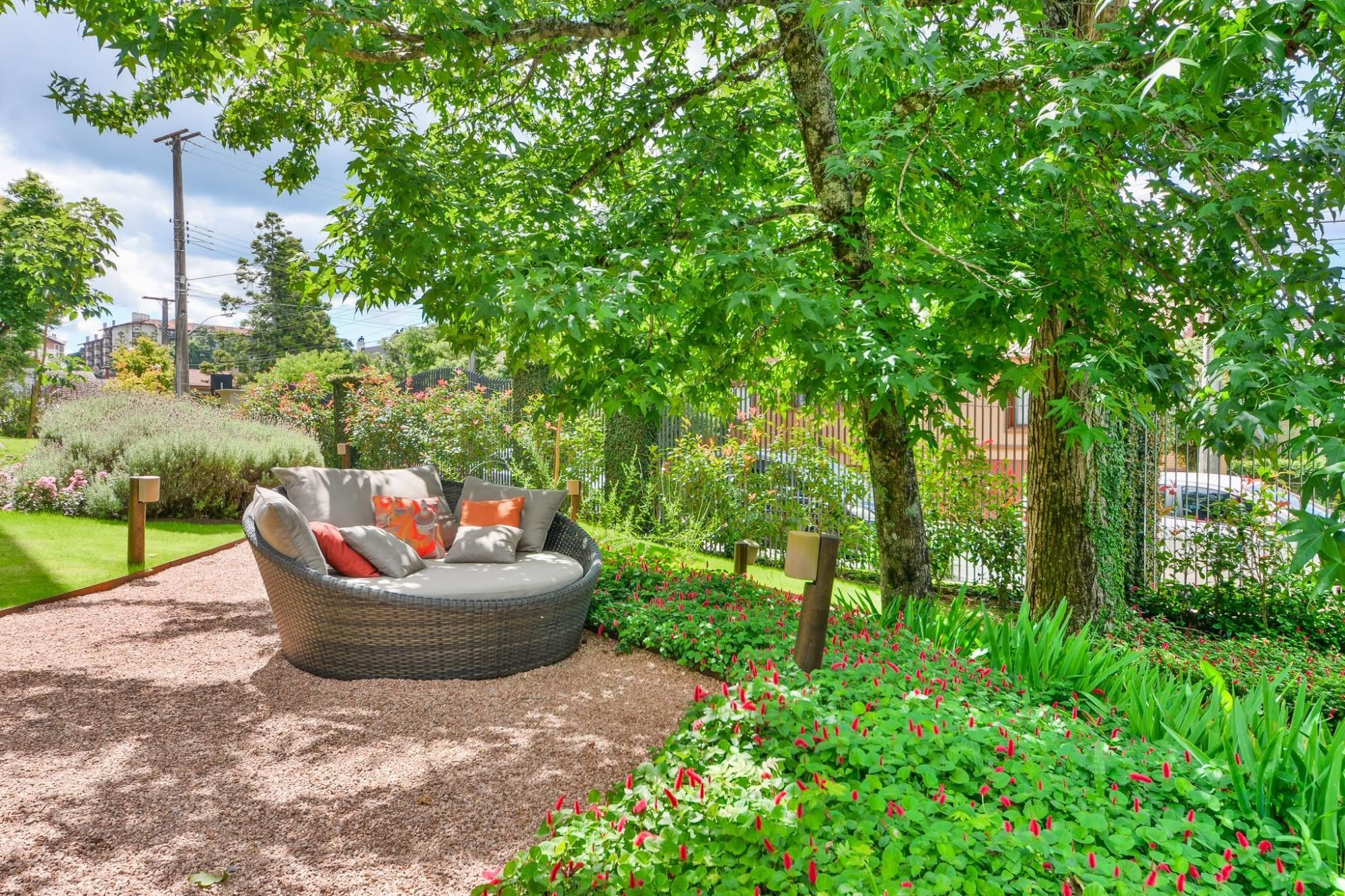 O amplo terreno é envolvido por um belíssimo paisagismo, com jardins, trilhas para caminhada, lounges aquecidos e espaços de convivência perfeitos para momentos de lazer e relaxamento.