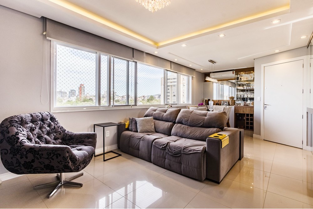 Apartamento no bairro Jardim Itu Sabará em Porto Alegre no condomínio fechado localizado na Rua Cruz Jobim apto 601 com 74 m2 distribuídos em 8 cômodos com 2 quartos e 2 banheiros sendo 1 suíte, sala de jantar integrada à cozinha com armários planejados, closet e lavanderia, conta com garagem sistema de alarme câmeras de segurança interfone e acessibilidade para cadeirantes, condomínio com área de churrasqueira e hall de entrada, aceita pets com medidores individuais de água e gás, próximo ao Terminal Triângulo da Assis Brasil com fácil acesso a escolas lojas transporte público vias principais aeroporto parques igrejas e hospitais. Preço e disponibilidade do imóvel sujeitos a alteração sem aviso prévio.