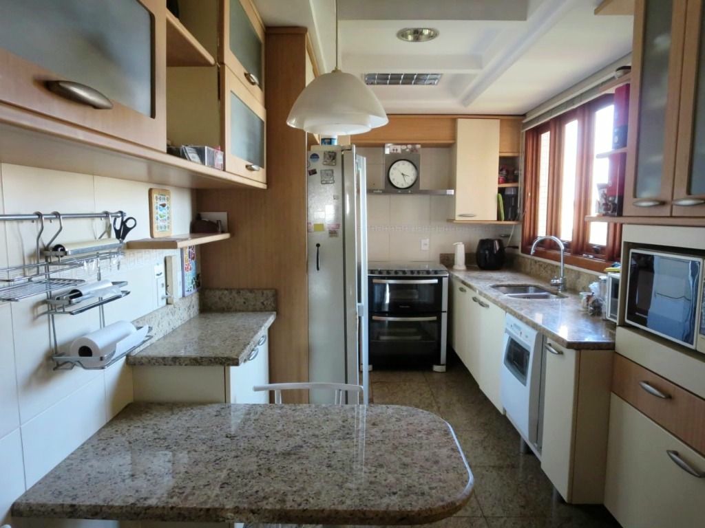 Excepcional apartamento com 04 dormitórios (sendo 03 suítes) e 03 vagas de garagem no bairro Higienópolis. Com seus 214 m² privativos oferece a comodidade de um imóvel de andar inteiro, com amplos espaços e uma vista espetacular do Pôr do Sol. Living para dois ambientes com lareira e sacadão, espaço gourmet com churrasqueira e sala de jantar. Cozinha com balcões e armários, área de serviço separada. Possui lavabo, banheiro social e outros três banheiros nas suítes. Sol o dia todo. Ar condicionado central. As três vagas de garagem são separadas e cobertas. Edifício enxuto com apenas 10 moradores, dois elevadores, salão de festas e acesso eletrônico. Excelente localização, a meia quadra da Cristóvão Colombo, junto ao colégio João Paulo, e próximo do Hospital Militar, Colégio Pastor Domhs e Zaffari Higienópolis. Preço e disponibilidade do imóvel sujeitos a alteração sem aviso prévio.