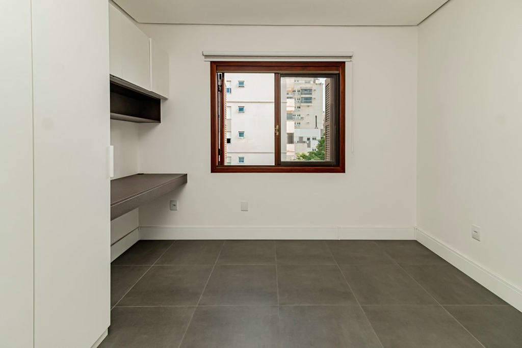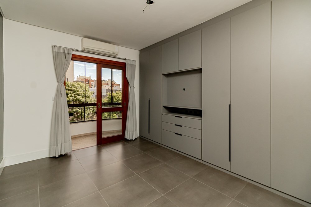 Apartamento desocupado, 2 dormitórios sendo um suíte, 88m2 privativos, living com sacada e churrasqueira, dormitório de casal com sacada, todos dormitórios com armários sob medida, cozinha montada com armários sob medida, fogão cooktop, forno, ficam 2 ar condicionados split, piso porcelanato em todo apartamento, de frente, orientação solar leste e vaga de garagem, prédio com elevador.
