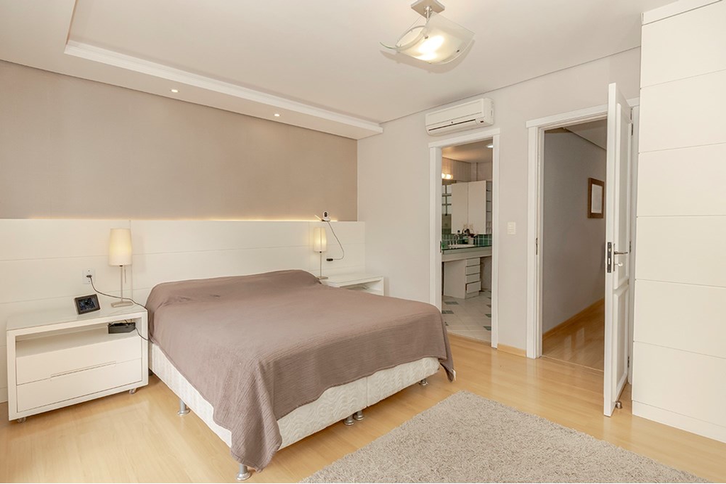 A segurança é garantida com circuito de segurança, interfone, além de vagas em garagem coberta para 4 veículos, com porta automática, garantindo praticidade e segurança ao entrar e sair do lar. A propriedade possui ainda registro de gás e água individuais, tornando a gestão dos serviços utilitários mais eficaz. Possui também preparo de laje para instalação de piscina.