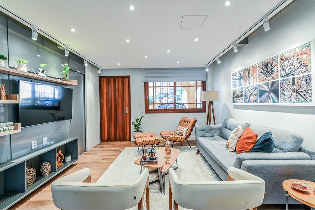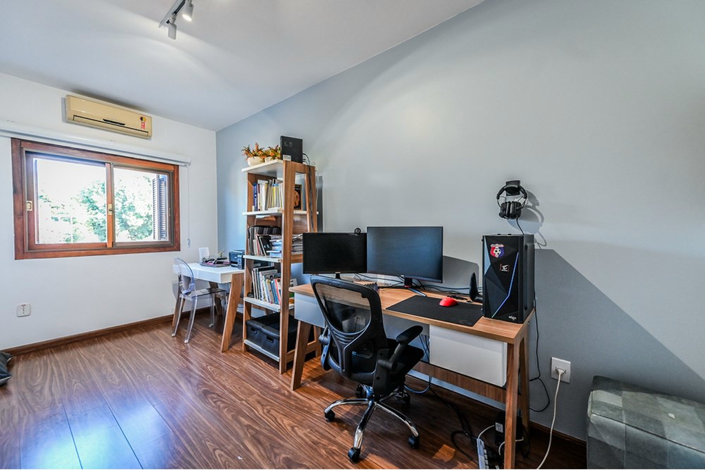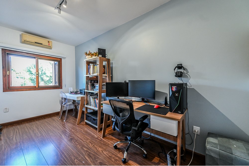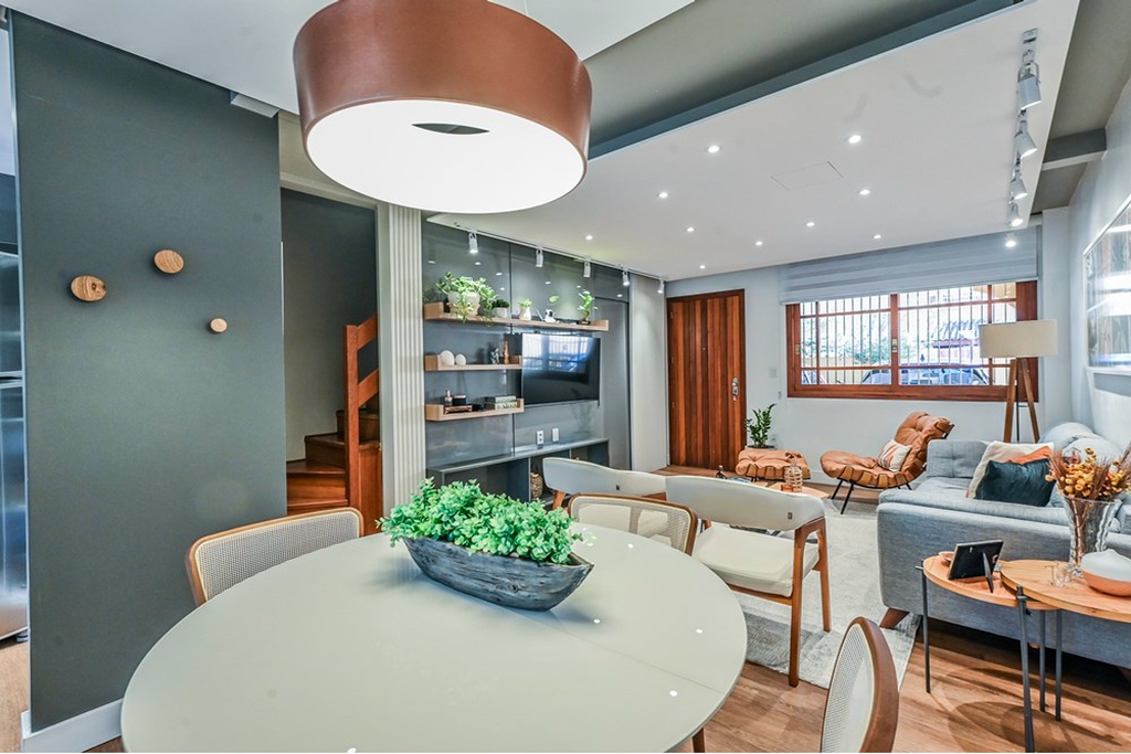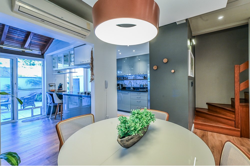Entre as inúmeras características da propriedade, destacam-se o espaço gourmet com churrasqueira, um quintal com jardim e a possibilidade de ter animais de estimação. A casa também conta com áreas integradas, armário embutidos, cozinha gourmet em conceito aberto com a sala de jantar e estar. Para aqueles que valorizam o conforto, há ar condicionado, e chuveiro a gás., e no terceiro piso temos uma lavanderia equipada, uma sala de tv ou estudos ou mesmo um espaço para home office e um terraço com muito sol para estender as roupas da família ou aquele chimarrão ou bronzeamento no verão.