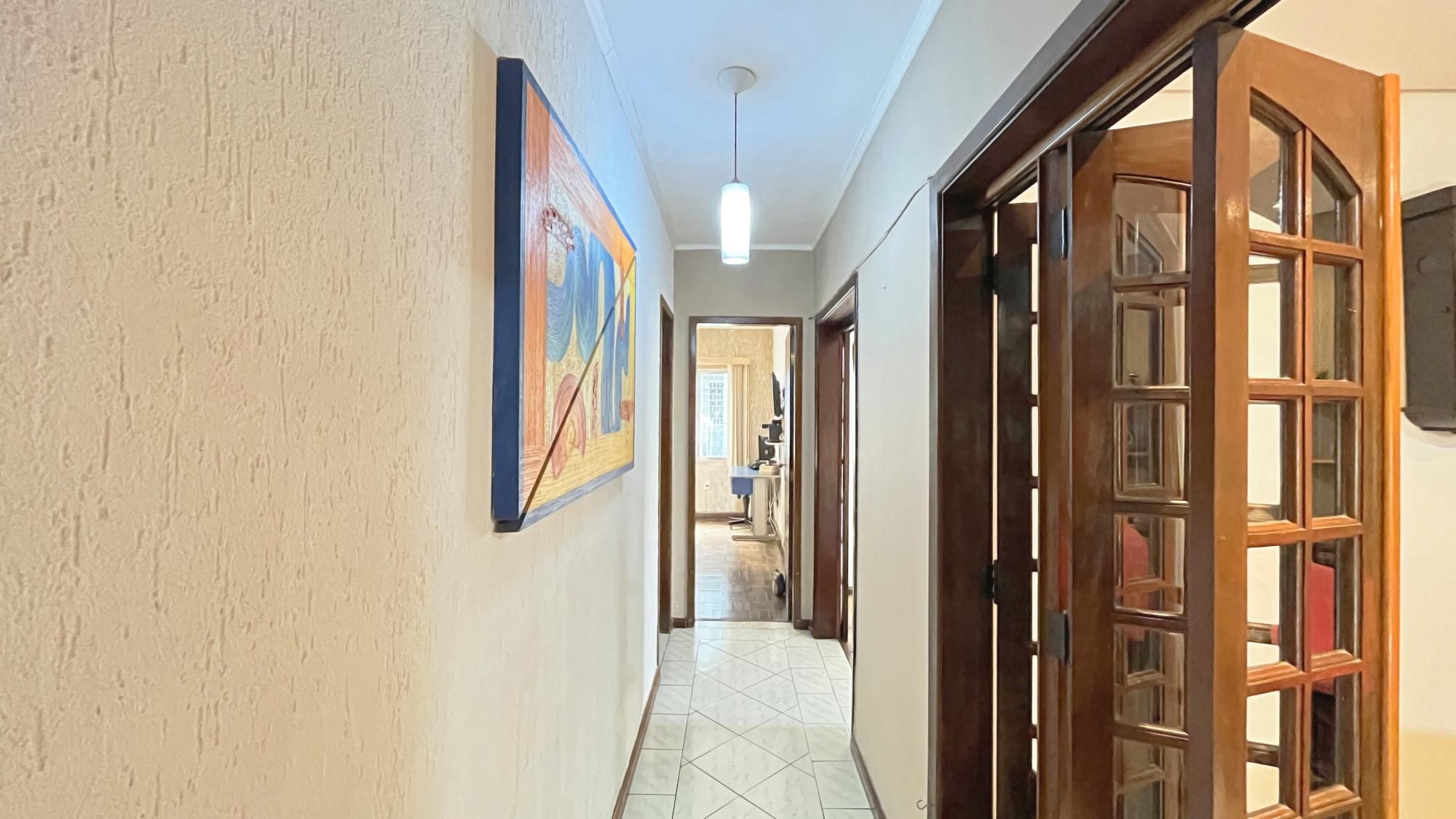 Casa de 156 m² privativos, em terreno de 450m², com 3 dormitórios (sendo 1 suíte), 4 banheiros (um com banheira), 4 vagas de garagem. Possui uma casa separada, nos fundos, com um banheiro, quarto extra (pode ser escritório), lavanderia e grande espaço de salão de festas com churrasqueira.