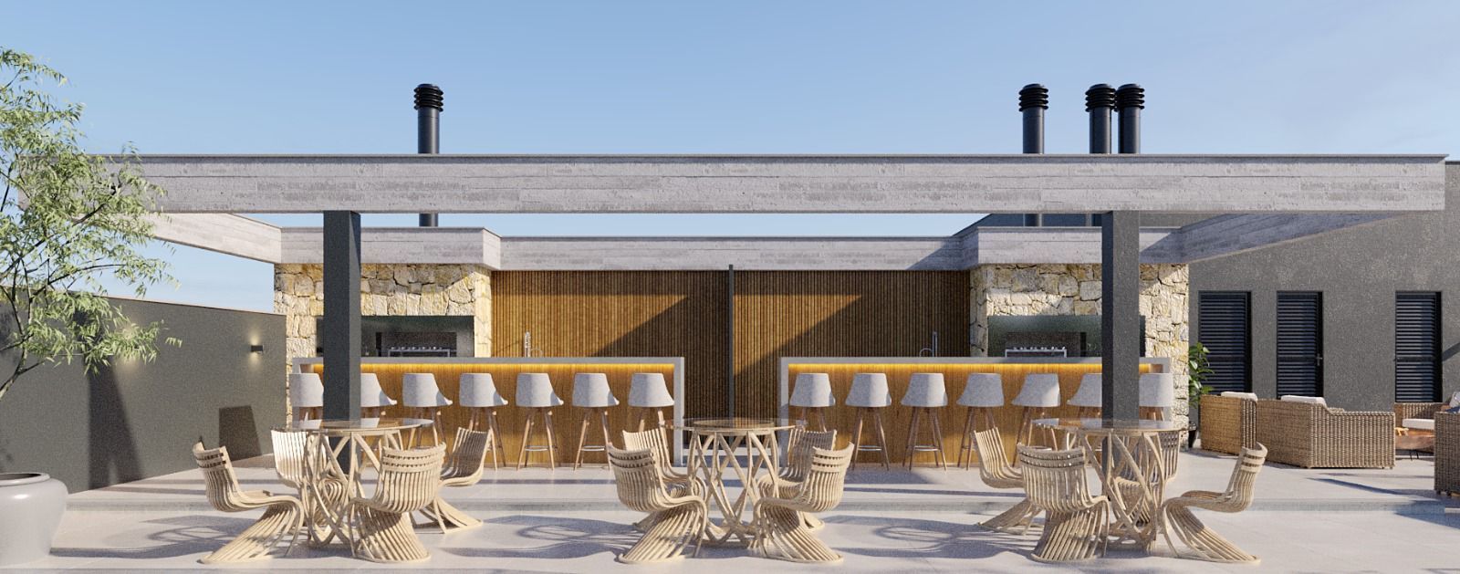 - Arquitetura moderna com concreto aparente.