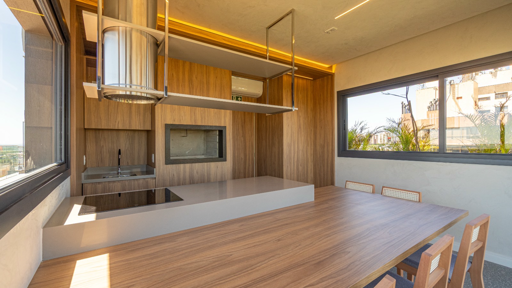 São 118 m² privativos, com 3 dormitórios (1 suíte), amplo living com churrasqueira, cozinha integrada e área de serviço.