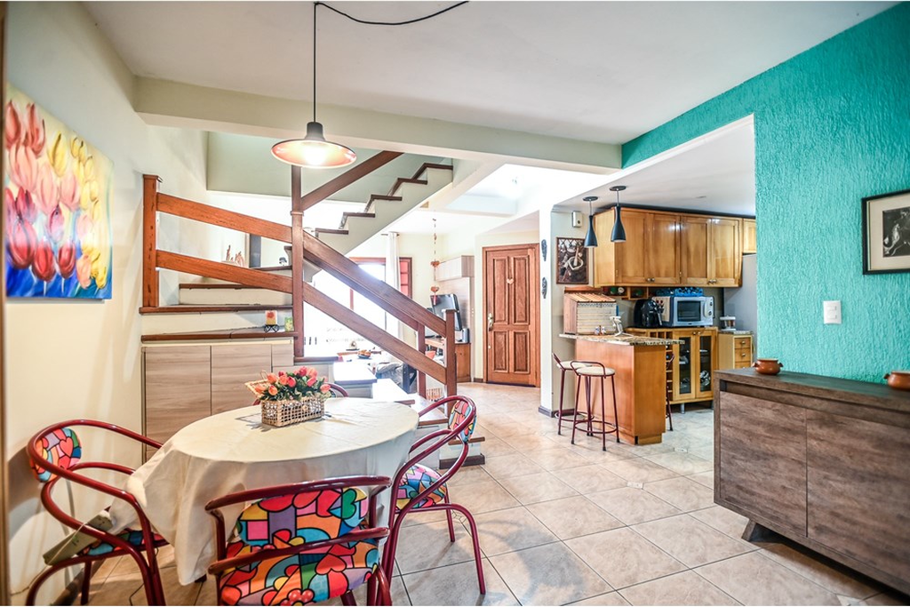 A propriedade ainda dispõe de um sótão habitável com pé direito de 3 metros, proporcionando um espaço adicional versátil para suas necessidades. A sala de estar, equipada com uma aconchegante lareira, cria um ambiente acolhedor para os dias de inverno, enquanto a sala de jantar integrada à cozinha e à churrasqueira oferece um espaço perfeito para reunir a família nas refeições e celebrações.