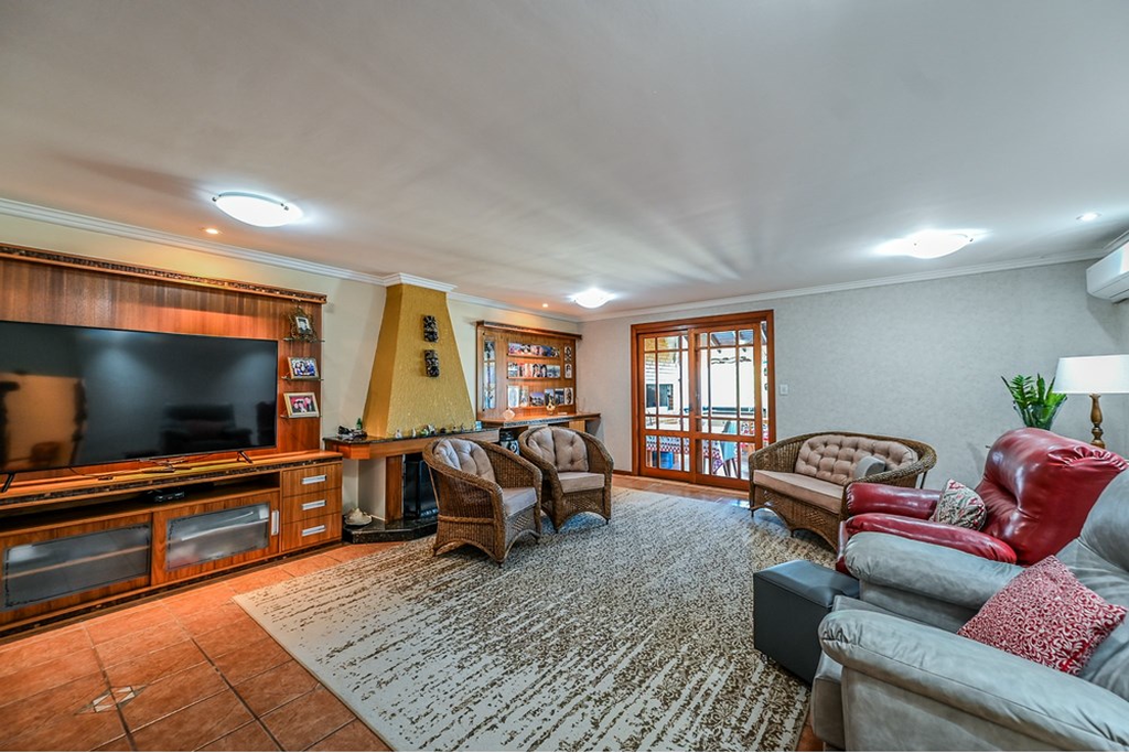 - Pátio com piscina e quiosque, garagem coberta para 2 carros e descoberta para mais 2.