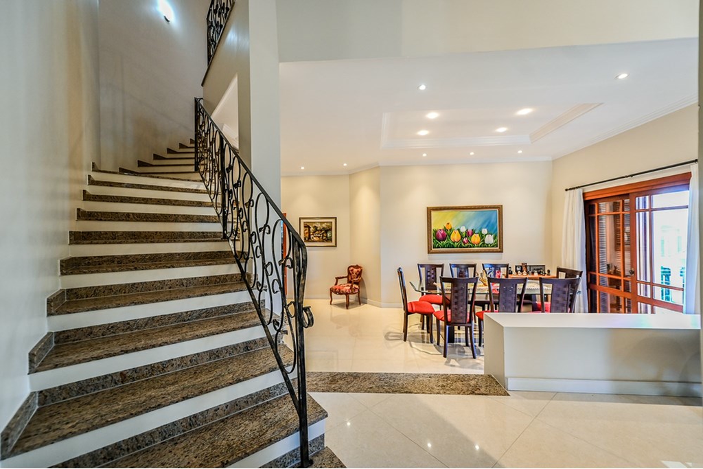 *Sustentabilidade*: A casa conta com placas de energia solar para a casa e piscina, promovendo economia, além de um sistema de aquecimento a gás que fornece água quente em todos os ambientes.