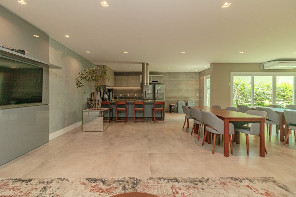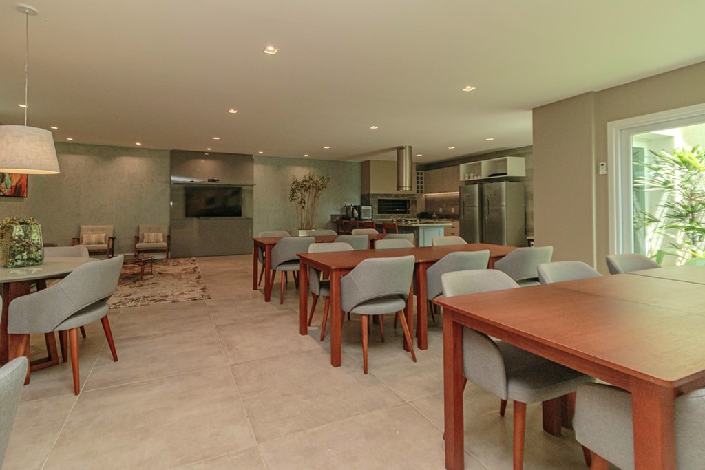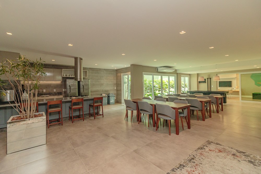 Salão de festas com espaço gourmet