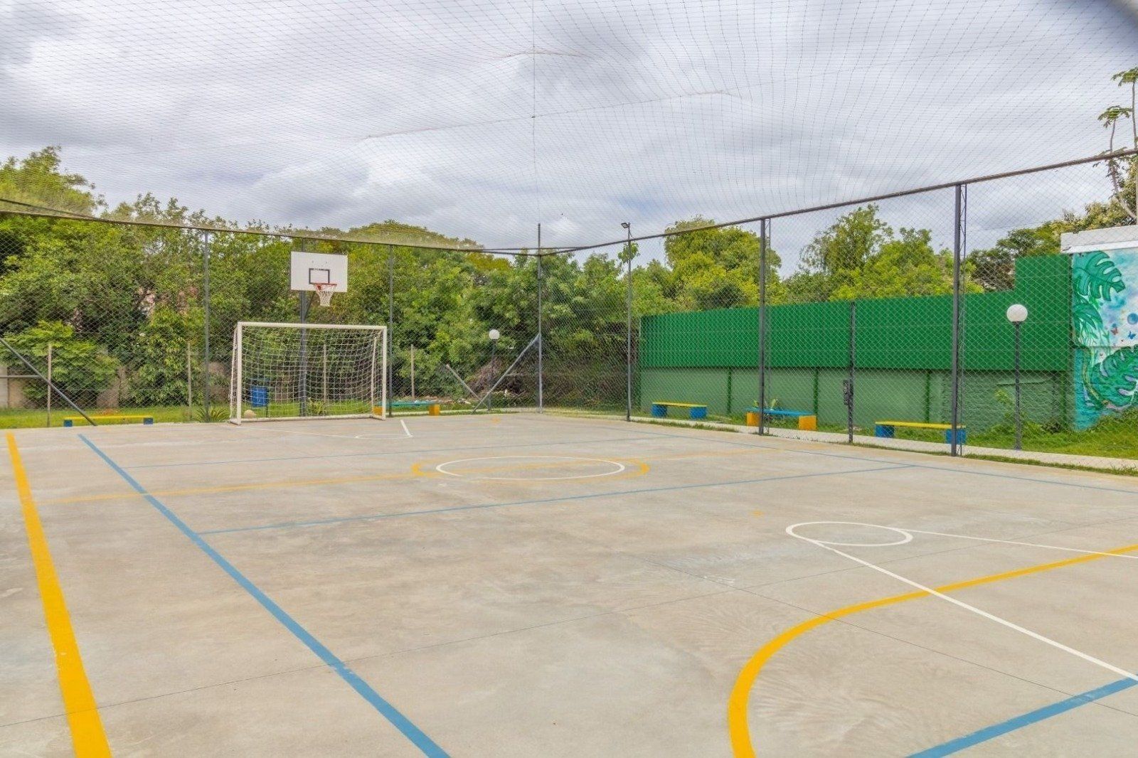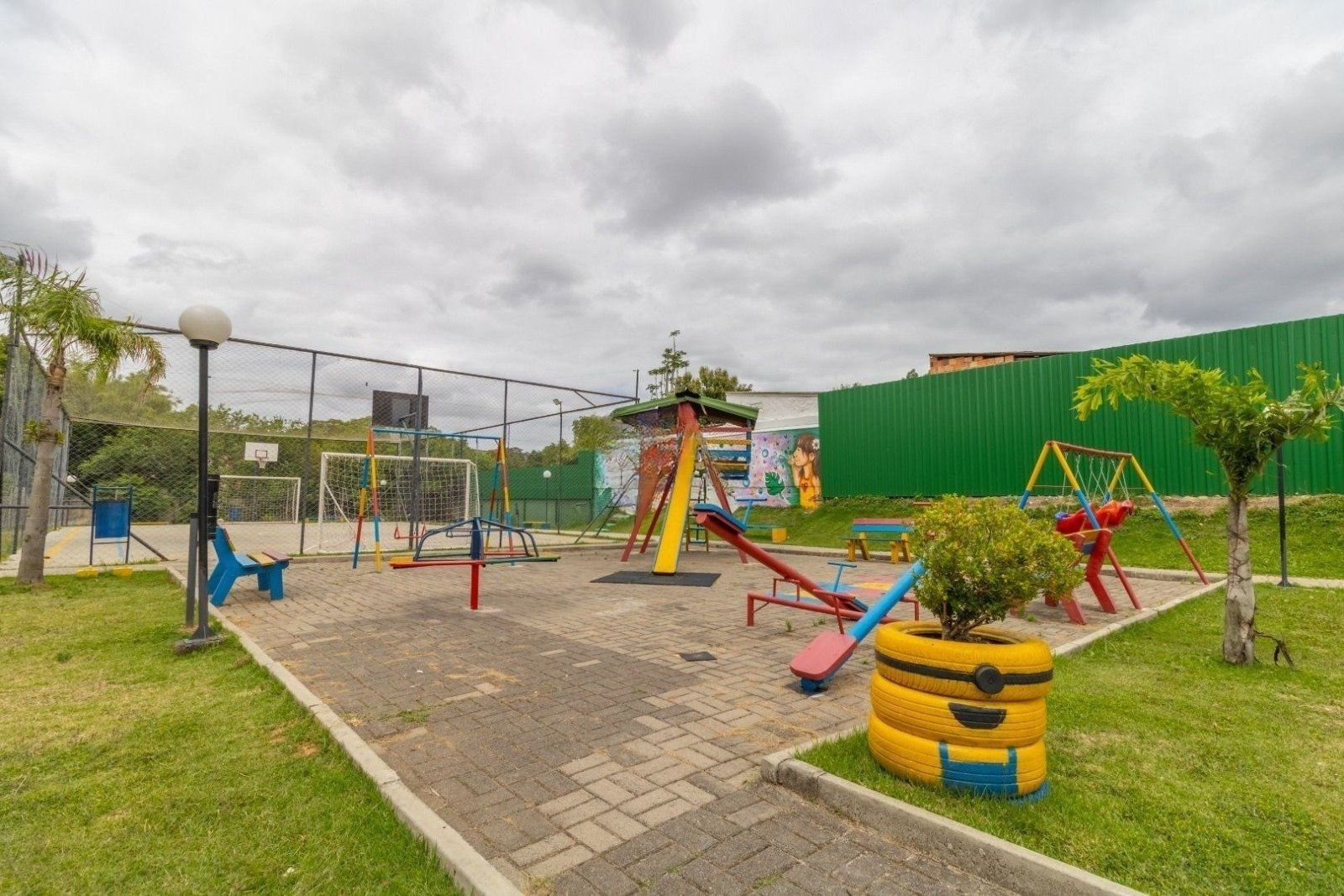 O condomínio oferece infraestrutura completa, com portaria 24 horas, gás central, piscina, salão para eventos, espaços com churrasqueira, playground, quadra poliesportiva e área exclusiva para pets.